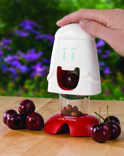 Description : Cherry Chomper - Lo Snocciola Ciliegie. Rosse, dolci, succose e nutrienti... Di cosa stiamo parlando? Delle ciliegie ovviamente! Queste piccole delizie sono uno dei frutti più amati. L'unica "pecca" è il fatto che ogniuna di esse contiene un fastidioso nocciolo. Beh, il nocciolo delle ciliegie non sarà più un vostro problema. Come mai? Semplice, perchè ora avrete la possibilità di usare un gadget per snocciolarle con un semplice gesto: il Cherry Chomper! Basterà inserire una ciliegia nella "bocca" del Cherry Chomper, premere la testa e rilasciarla; questo movimento rapido e preciso farà cadere il nocciolo nell'apposito contenitore, lasciandoti una succosa ciliegia pronta per essere mangiata! Lo snocciolatore Cherry Chomper, grazie alla sua estetica risulterà, oltre che molto utile, anche divertente. Infatti anche i più piccoli potranno utilizzarlo poichè la sua linea è stata appositamente studiata per proteggere le dita di chi lo utilizza, senza potersi in alcun modo ferire. Grazie a Cherry Chomper potrete fare delle torte alla frutta con le ciliegie senza nocciolo ma con il loro normale aspetto! Lavarlo è molto semplice, potrete inserirlo anche in lavatrice senza nessun problema. Potrete oltresì utilizzarlo per snocciolare le olive! Gustose ciliegie aspettano solo di essere mangiate... Senza il fastidioso nocciolo! Caratteristiche prodotto: - gadget che permette lo snocciolamento di ciliegie ed olive; - simpatico e sicuro grazie alla sua linea che protegge le dita; - lavabile in lavastoviglie; - dimensioni: 9.1 x 15 x 7.2 cm; - incluso nella confezione un foglietto di istruzioni contenente 3 ricette (in inglese).